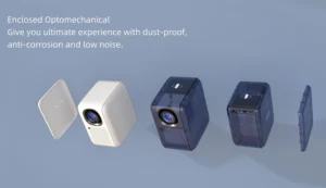 Διαθέτει LED λυχνία με μεγάλη διάρκεια ζωής 20000 ωρών και μπορεί να προβάλει εικόνα μεγέθους έως 240″ με φωτεινότητα 600 ANSI lumens και Full HD ανάλυση.
