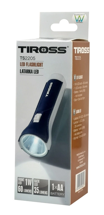 TIROSS φορητός φακός LED TS-2205, 60lm + 35lm, μπλε